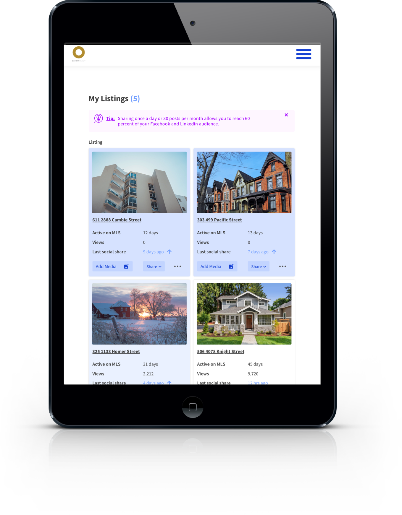 An application built from scratch for brokerages to offer a central location for their agents to manage their listings through a personalized dashboard. The application allows agents to generate multiple QR codes for open house signs and marketing materials.